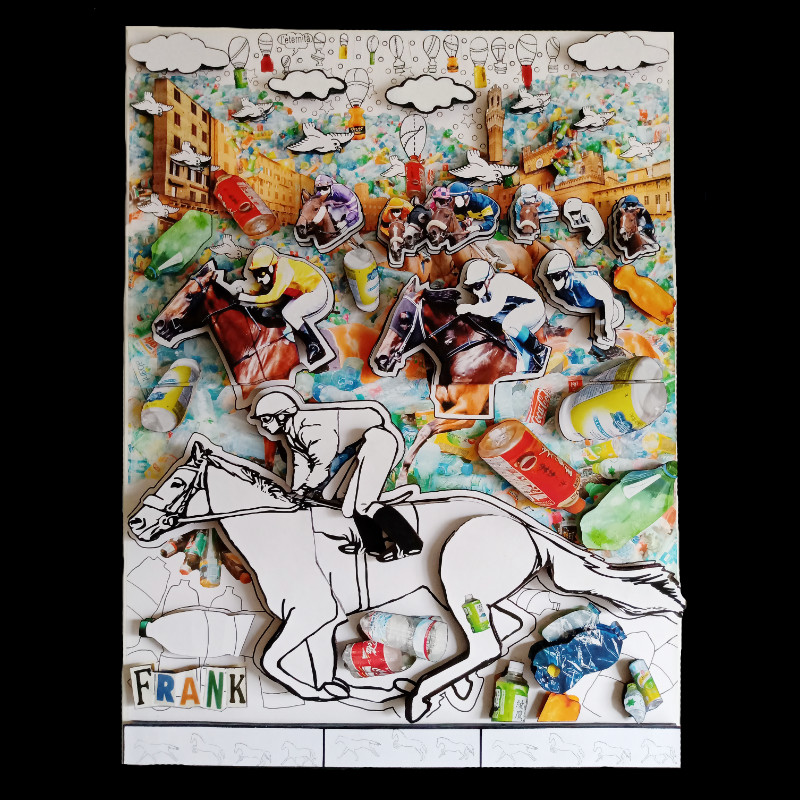 Materiali: Colori Acrilici,Stampa Digitale su PVC, vari tipi di Colle, a caldo, all'acqua, di animale; foglia Oro / Rame / Alluminio, Resine per simulare i metalli, Resina Poliuretanica a base d'acqua, Accessori in materiale plastica e Trasparente finale.